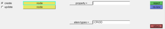 确认“element type”设置为CROD。在这个最简单的例子中,通过点击节点创建一个CROD单元。