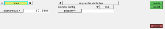 当然也存在其它选项允许一步创建多个CROD单元。比如,使用Line Mesh面板。这个面板位于下拉菜单Mesh > Create > Line Mesh。