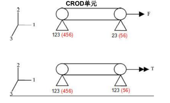 这种单元只能“理解”拉伸和压缩载荷。换句话说,CROD单元的节点只有移动自由度(但这种单元有扭转刚度)。