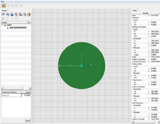 注:所有与此横截面相关的信息,比如面积、惯性矩等都已自动计算并列在HyperBeam右侧栏中。这些信息存储为“beamsection”集合中(在此命名为rod,列在左侧栏中)。随后,这个beamsection将会被集成到强制性地属性集合中。复杂吗?并不复杂,正如你所见……