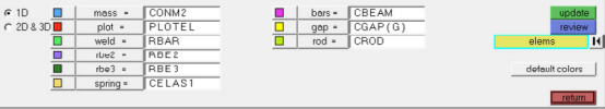 你可以使用Rods面板,从手工创建CROD单元开始(有或没有属性都可以)。这个面板位于下拉菜单Mesh > Create > 1D Elements > Rods。