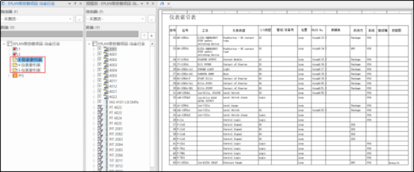 通过Eplan软件的自动报表功能,可将仪表信息按照预设定的仪表索引表格进行输出,完成仪表索引表的设计工作。